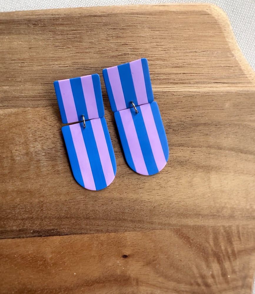 Purple + Blue stripes. Measures 2.25” long x 1” wide.
